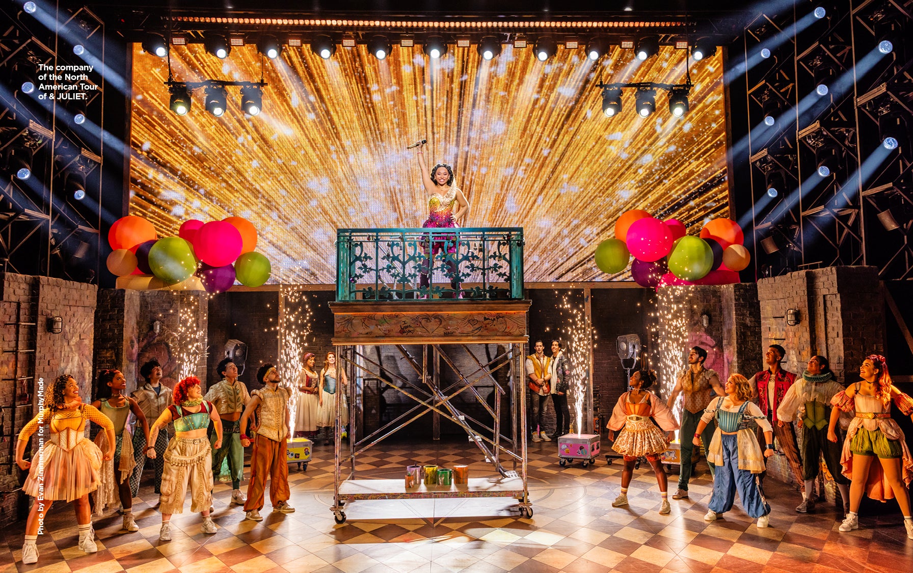 & Juliet includes flashing/strobe lighting, loud noises, confetti cannons, and pyrotechnics throughout.